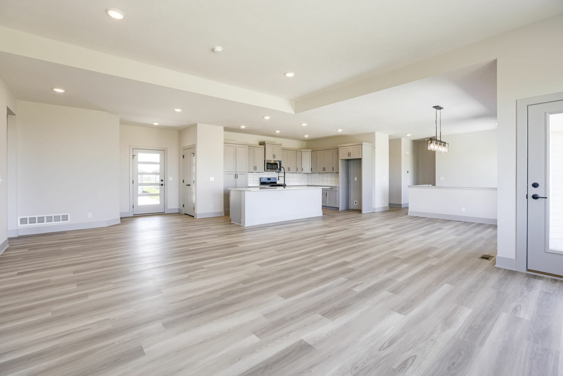 elcome to our nearly completed spin on the modern farmhouse, the Jackson. Situated on an oversized corner lot, this is our largest floor plan and features many upgrades including ten-foot ceilings in the main living area, an open concept with the kitchen area and a large island looking into the great room. The main floor has a split floor plan with a private master suite on one side and two bedrooms and a bath on the other side of the house. The lower level continues with the split-level design with two bedrooms on each side of the home separated by the massive living area and kitchen. This plan also features a flex room that could serve as an office or exercise room. There is so much room that everyone can have their own space! 4-car garage! Full sod and sprinklers, high-efficiency HVAC, 100% Hardie siding, a one-year builder warranty, and much more!!! *Photos are of a similar home, virtual staging used in some photos